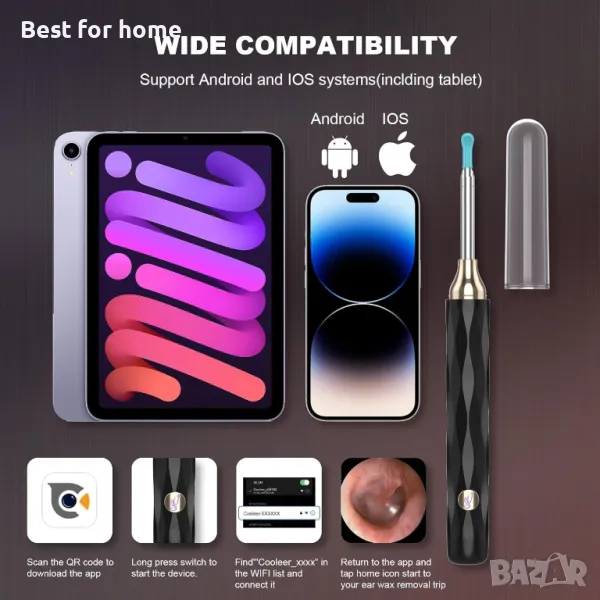 【WIFI връзка и контрол на ПРИЛОЖЕНИЕТО】: Уредът за почистване на ушна кал е лесен за работа, съвместим с повечето смартфони и таблети с Android и iOS. Можете лесно и ясно да проверявате ушите си на телефона или таблета си, да правите снимки и да записвате видеоклипове в реално време. Това е удобен инструмент за премахване на ушна кал за домашна употреба.