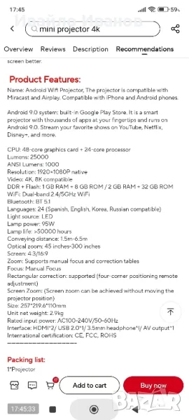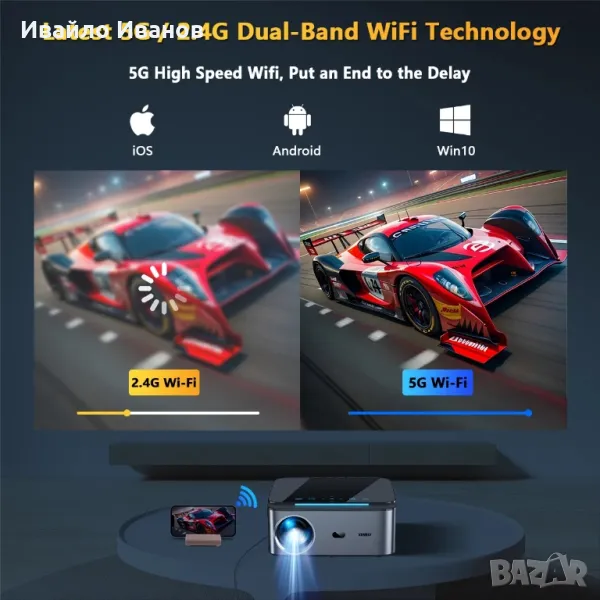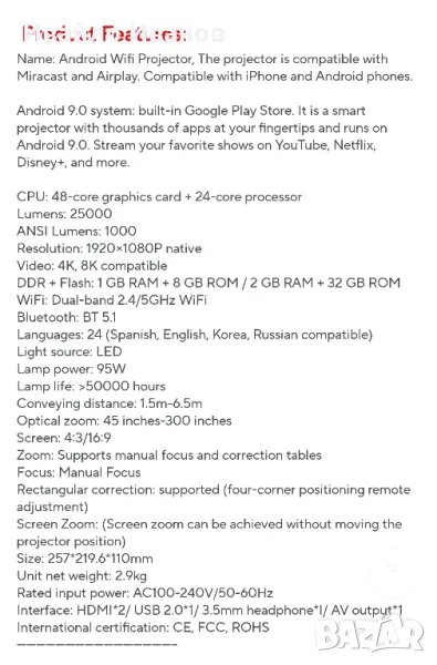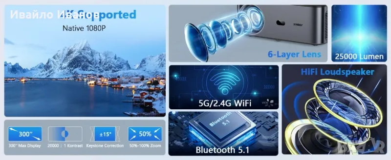 Аndroid LED проектор 1080HD 25000Lumens + Wireless HDMI Set 50m.