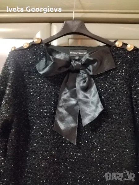 Страхотна черна рокля с подплата с блестящи нишки А силует размер С дължина 83 см страхотна