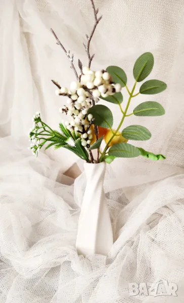 3. Композиция от изкуствени цветя в хубава керамична ваза, височина 17 см, диаметър 18 см - цена 20 лв