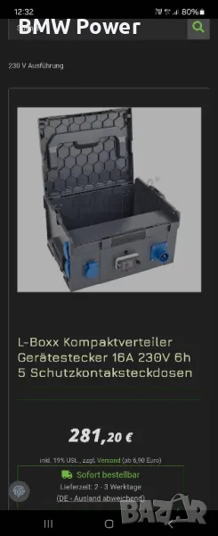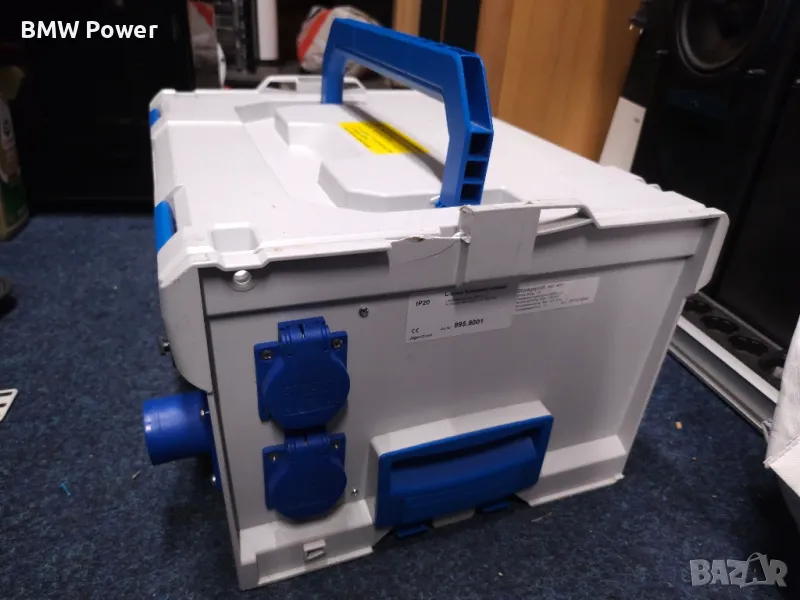 Продавам куфар Sortimo L-BOXX с вграден разклонител с 5 гнезда както и предпазител. Съвместим с куфари BOSCH L-BOXX. Единствената забележка се вижда на снимките, отчупено е едното ушенце. Нов струва 281 евро, прикачвам и скрийншот.