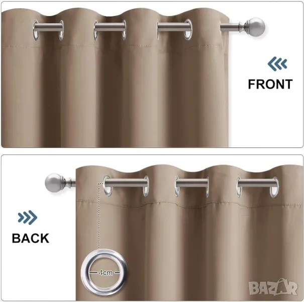 Комплект 2бр трислойни завеси с метални халки, 100% затъмняващи, шумоизолиращи