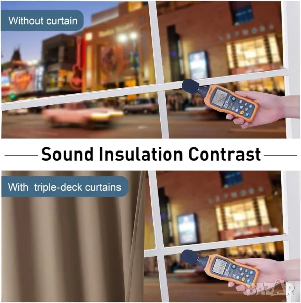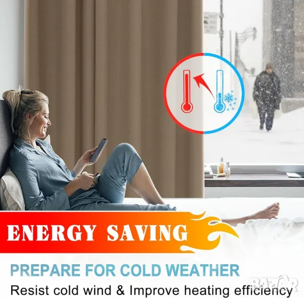 НАМАЛЯВАНЕ НА ШУМА: В средата на 3-те слоя има подвижна филцова подплата, която може да абсорбира шума. Звукоизолиращият ефект се влияе от околната среда и личното ви усещане. Моля, имайте предвид, че тези завеси не са 100% звукоизолиращи.