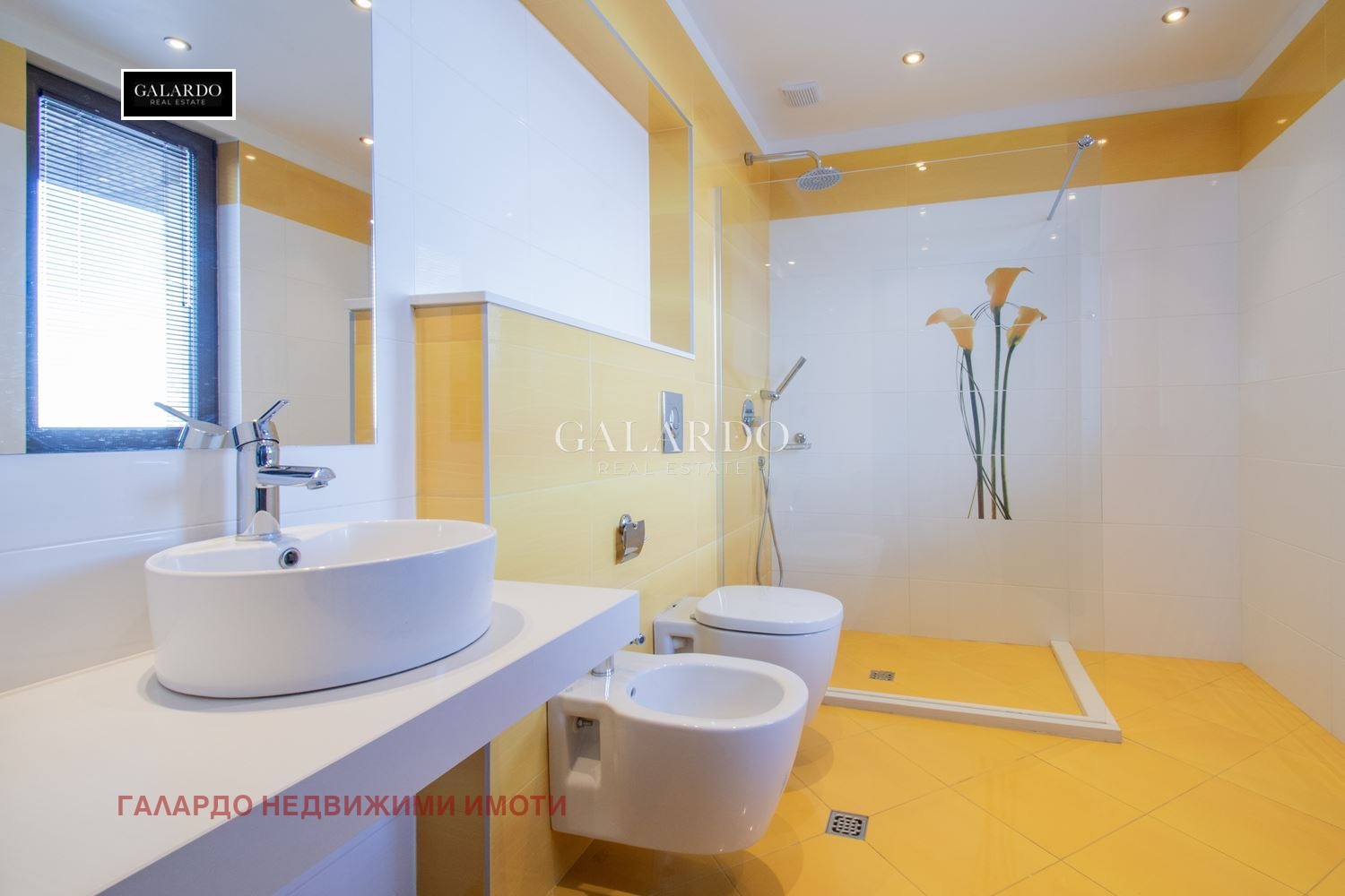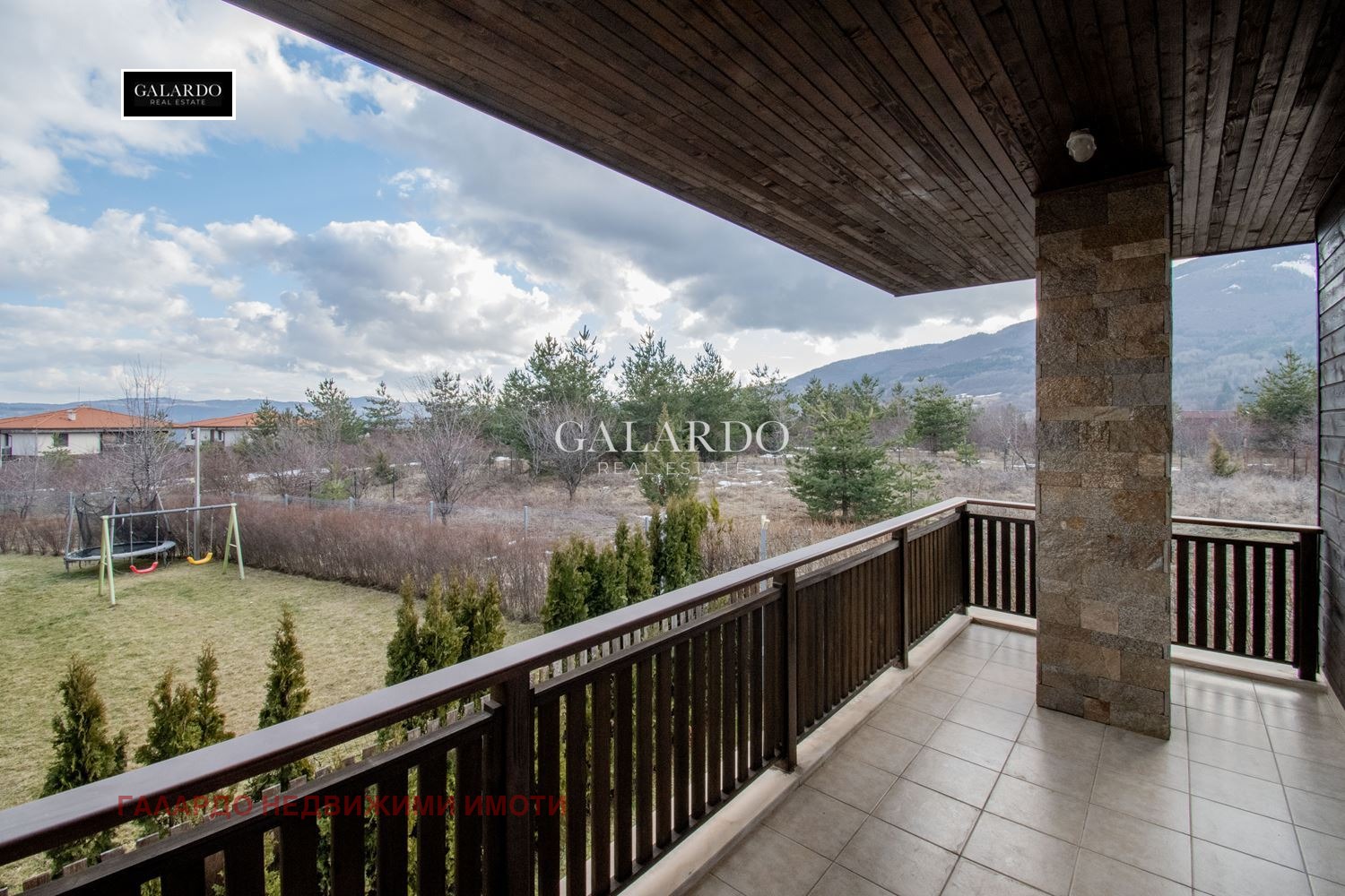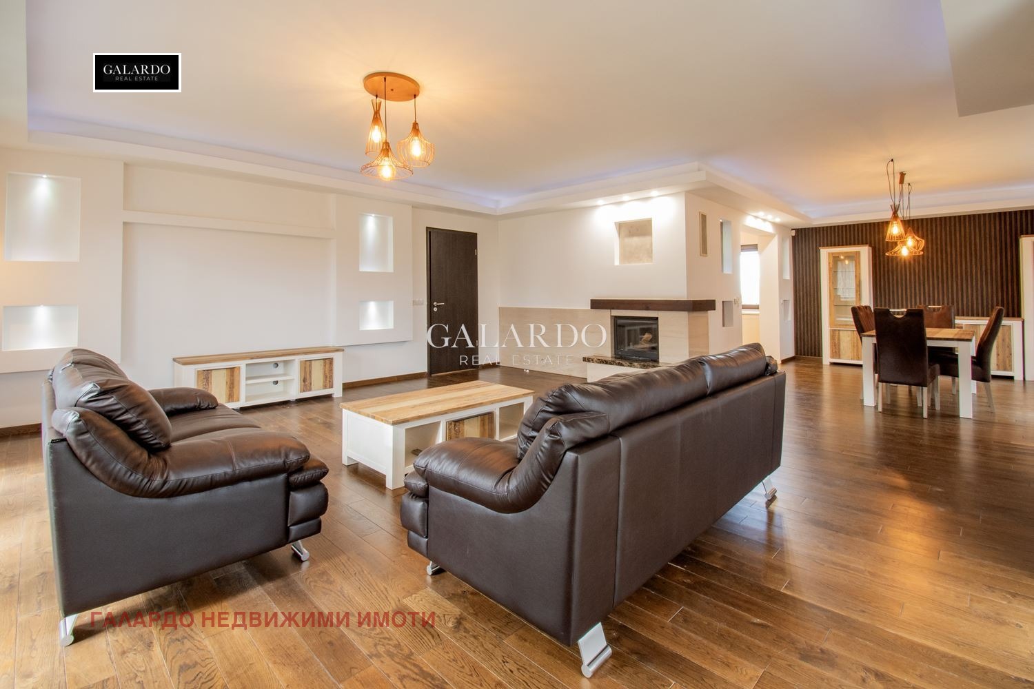 Galardo Real Estate Ви предлага за продажба луксозна еднофамилна къща в затворен комплекс разположен на най-красивия хълм на Бистрица, на минути от парк Витоша, с прекрасни гледки към Черни връх, Рила, Стара планина и София. Обща разгъната площ на къщата е 535 кв.м и прилежащ озеленен двор от 605 кв.м. Къщата е напълно обзаведена и се състои от просторен хол с трапезария и отделна кухня,5 спални /3 от тях над 30 кв.м всяка със собствени бани /общо 5 бани за къщата/, гараж за 3 коли, фитнес, винарна, и технически помещения, с изградена камина и тераса за външно барбекю. Отоплението е локално с термопомпа.