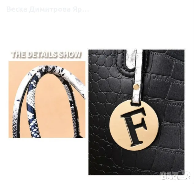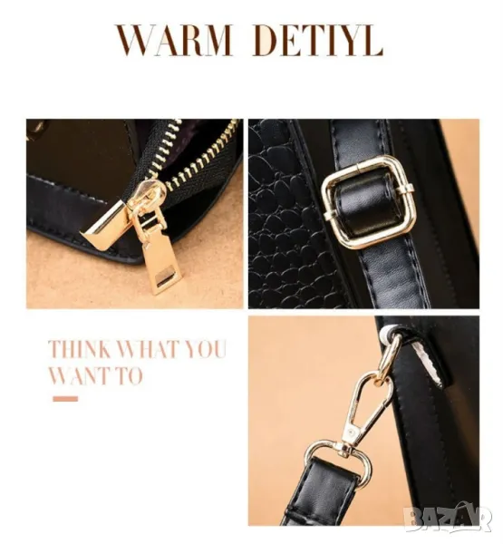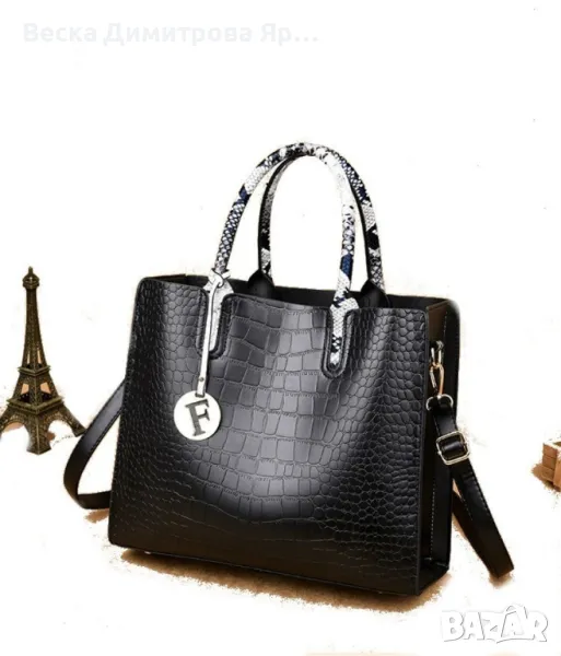 Стилна и елегантна кожена чанта с крокодилски релеф в комплект с портфейл BAG87 → Обява 49425607
