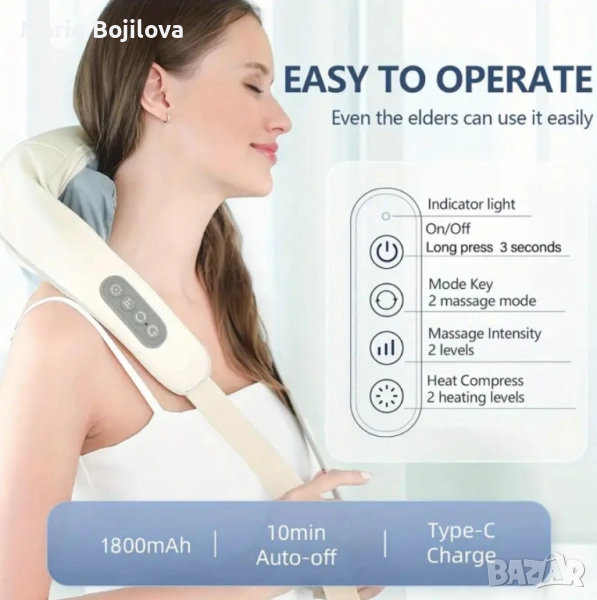 Акумулаторен масажор с топлина за врат,гръб,рамена,крака,за мускулна релаксация