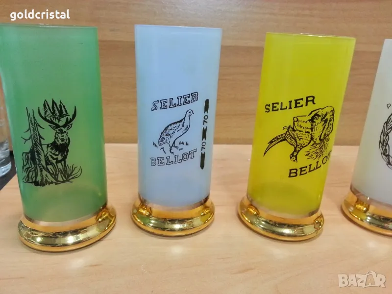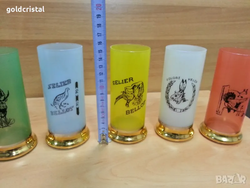стари стъклени чаши вода бира вино пиво патрон различни цветове широк златен кант сервиз комплект сет лот ретро арт декор винтидж колекция стари старинни антикварни предмети обзавеждане за дома и семейството подходящи за подарък за ценители и колекционери