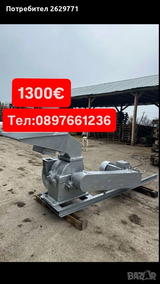 Продавам голяма ярномелка трифазна почти не използвана много здрава с 22 кв.ел мотор готова за работа монтирана на шаси,също има голям циклон цена 1300 евро./договаряне/повече информация на посочения телефон