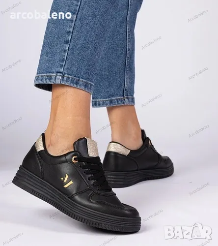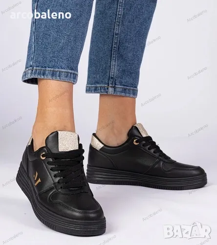 Тези дамски маратонки съчетават класическо черно с елегантен златен блясък, което им придава уникален характер. Съчетават се идеално с различни стилове – както дънки, така и рокли. Това означава, че можете да ги носите по много поводи, от ежедневни разходки до срещи с приятели.
