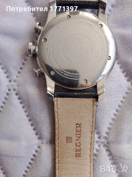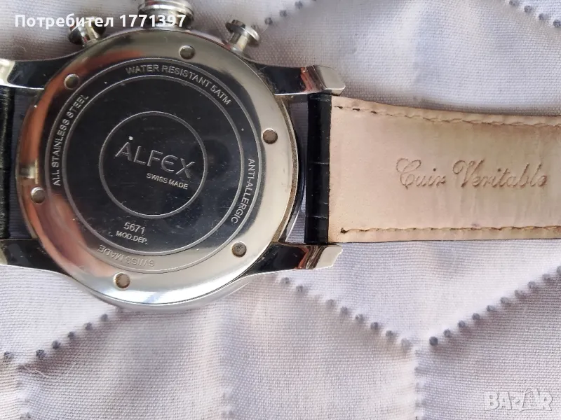 Швейцарски часовник Алфекс с диаметър 45 мм инкрустиран с камъни Сваровски, седефен циферблат, който си променя цвета при различна светлина. Механизъм Ронда. Каишка естествена кожа. В отлично състояние. Причина за продажбата е закупуване на по-скъп часовник и разпродаване на по-евтините. Цена нов последно около 500 евро. Става за китка до 21 см. За Плевен и Ловеч лично предаване.