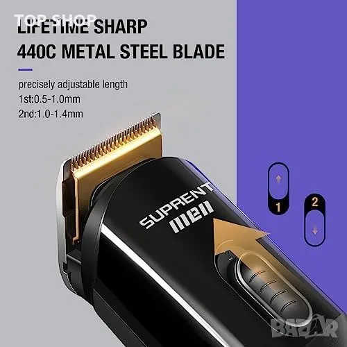 Персонализирано Подстригване: Регулируеми остриета от 0.5 до 1.4 мм, гребени от 3 до 12 мм.