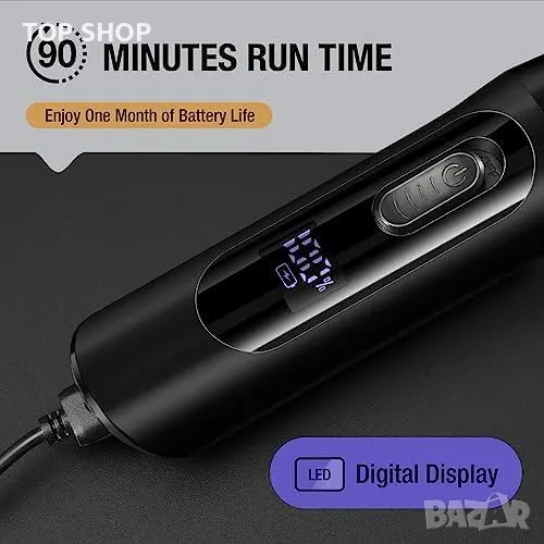 Дълготрайна Батерия: 1.5 часа безжична работа с LED дисплей за заряд.