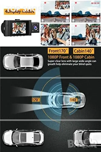Широк ъгъл 170°+140°: Осигурява широко зрително поле без мъртви зони, заснемайки всички детайли за по-безопасна среда на шофиране.