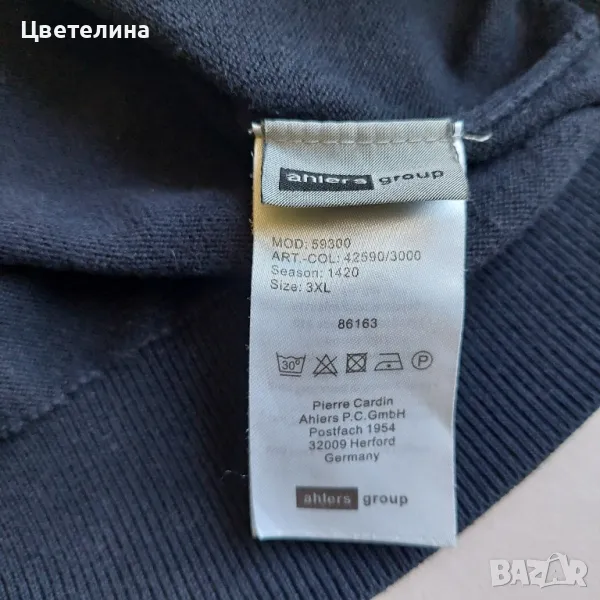 Pierre Cardin original, в тъмно син цвят, размер 3XL в отлично състояние. Обличан 2-3 пъти, изпран, без никакви забележки. Изключително мек, еластичен, удобен. Дължина от рамо 75 см. Ширина под мишница 69 см. Дължина ръкав 66 см. Доставка с опция прегред с Еконт