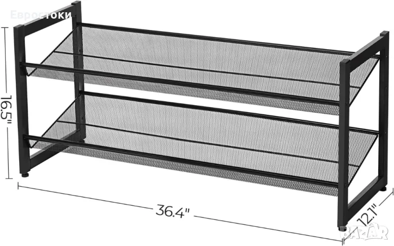 Регулируем рафт - Настройте го по свой начин. Наклонът на нашия органайзер за обувки може да се регулира на плосък или ъгъл според вашите предпочитания. Плътните метални мрежести рафтове и дизайнът на преградата предотвратяват падането на високи токчета за по-лесен достъп до обувките