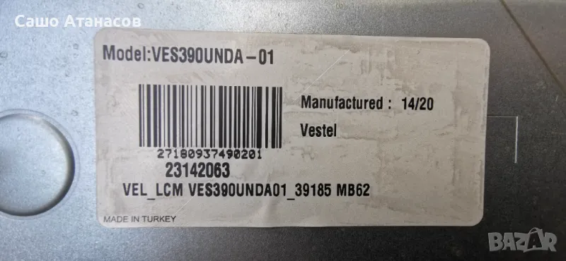 FINLUX 39FLHYR168SOC с дефектна матрица ,17MB95S-1 ,17IPS20 ,VES390UNDA-01 ,T390HVN01.0 ,17LD143-4