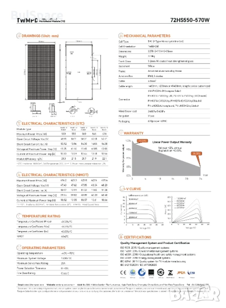 Фотоволтаичен панел Tongwei Solar 550 Wp → Обява 49430795