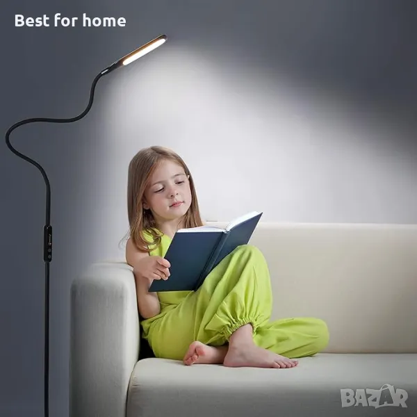 Подова лампа Zanflare 9 W LED светлина, Димируемо дистанционно управление Подова лампа Грижа за очите, 5 нива на яркост Стояща лампа за четене с гъвкава гъша врата за всекидневна, офис, спалня,