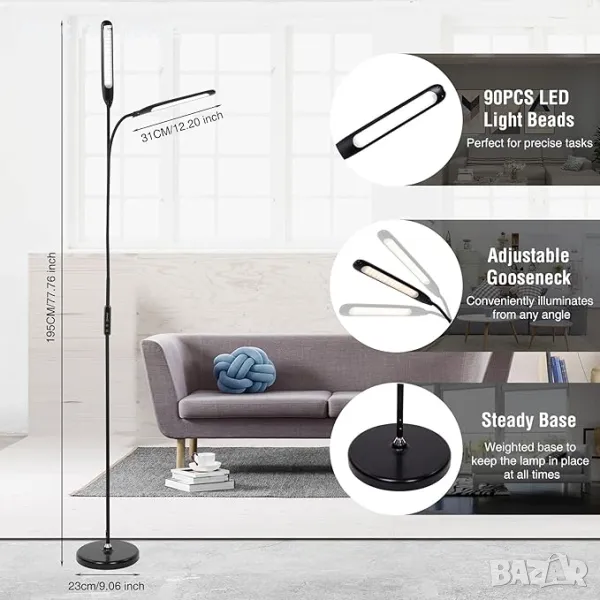 ★【Многофункционална и практична】: Стоящата подова лампа Zanflare е здрава, с тежка основа и 9W енергоспестяващи крушки. Хладната светлина е ярка и естествена за четене и работа, осигуряваща добра ясна светлина, топлата светлина е чудесна за релаксираща атмосфера. Силно гъвкавото гърло на лампата позволява 360° регулиране на ъгъла и височината. Това със сигурност предоставя всички функции, от които потребителят може да се нуждае.