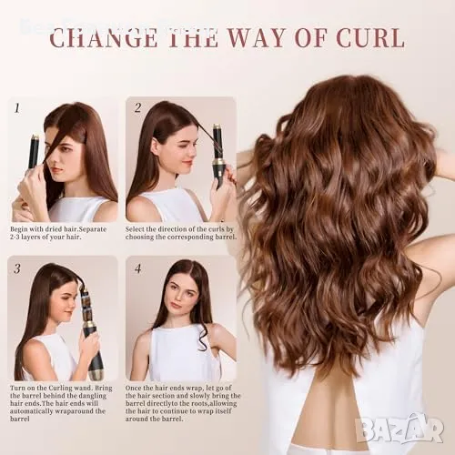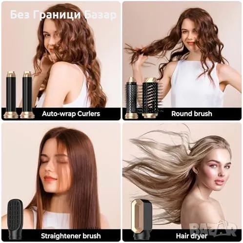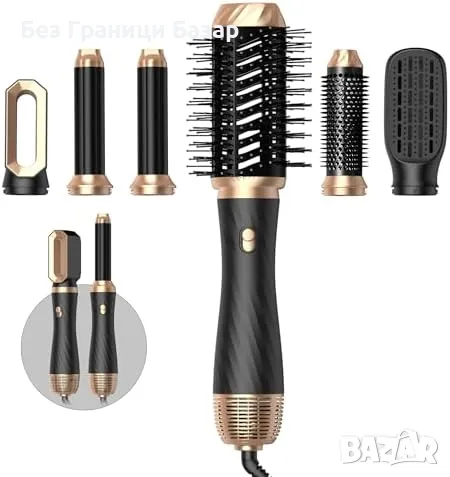 6 в 1 многофункционален стайлинг комплект – суши, къдри, изправя, придава обем и изглажда