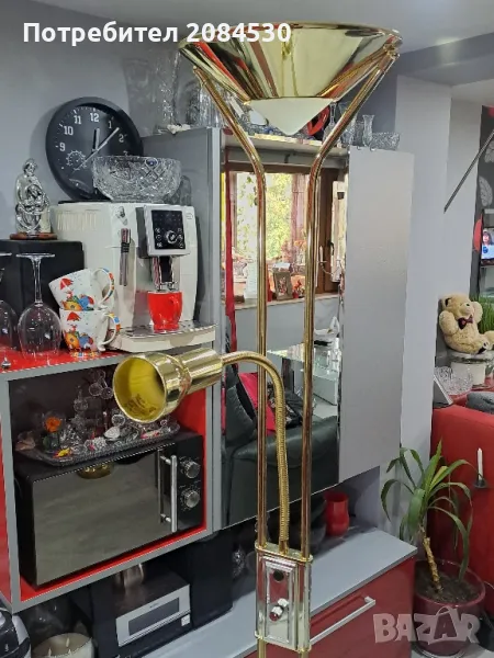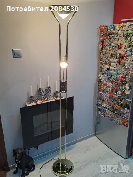 Внос от Австрия в много добро състояние. Работещ безупречно. Височина 176см;диаметър 26см. Пращам с куриер. Регулиране на светлината до 300w.. Регулиране позиционирането на лампата за четене.