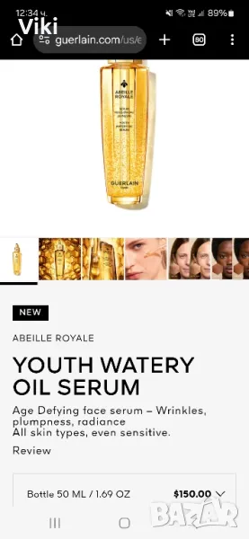 Abeille Royale Youth Watery Oil олио. Цената за 50мл е 271лв. Опаковката е 5мл