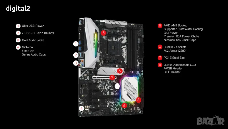ASROCK AMD B450 Steel Legend RGB ATX Пълноценно дъно .