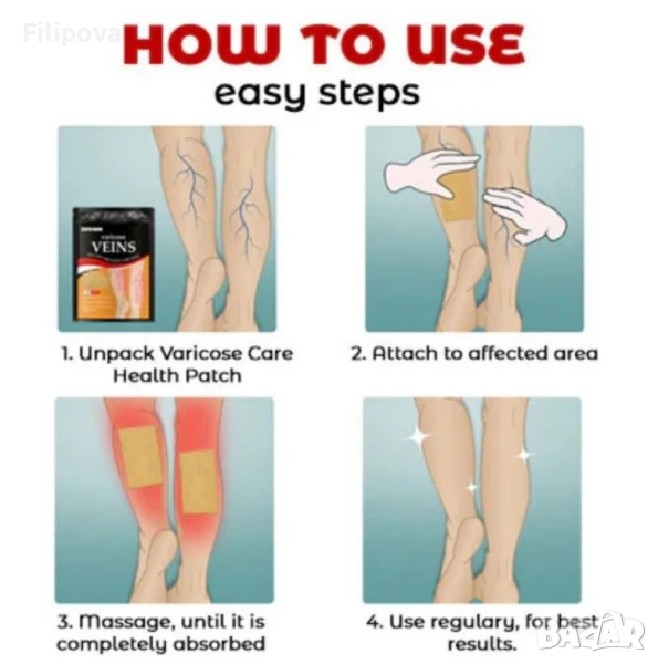 Здравен пластир за лечение на разширени вени Varicose Care Health Patch 12бр → Обява 49435127