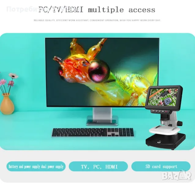 Цифров микроскоп с висока разделителна способност цифрово увеличение до 1200 пъти