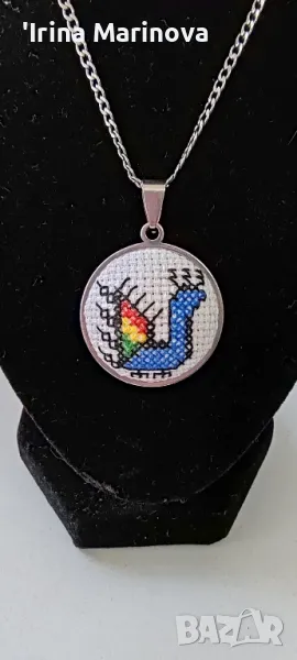 Ръчно извезана шевица - паун, монтирано на колие изцяло от стомана. Панамата е лакирана и може да се мокри. Ширина на шевицата 25мм
