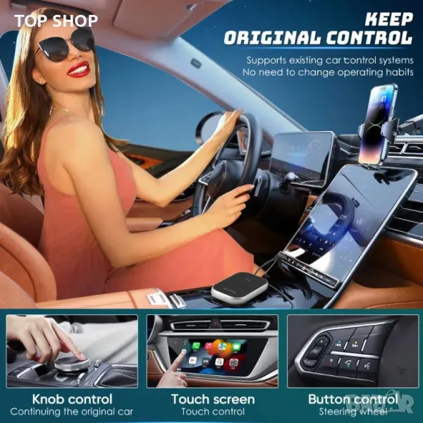Преобразувайте лесно кабелния CarPlay в безжичен с plug-and-play адаптер, без допълнителни приложения или системни надстройки. Съвместим с кабелен CarPlay и Android Auto (с изключение на BMW и автомобили с нова енергия), той поддържа iOS 10+ и Android 11+. Оборудван с 5,8 GHz WiFi и BT5.0 за плавно изживяване без забавяне, той осигурява надеждно качество на картината и звука. Включеният Type-C адаптер позволява свързване чрез USB или Type-C портове, което го прави универсален за различни настройки на автомобили. Изработен от авиационен алуминий с висококачествен стъклен панел за ефективно разсейване на топлината, той се отличава с издръжлив, лек дизайн (38 грама) и плетен удължителен кабел за лесна употреба, без да претрупва вашето пространство.