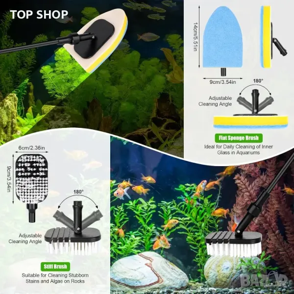 Комплект за почистване на аквариум AQQA, 6 в 1 с дълга телескопична дръжка