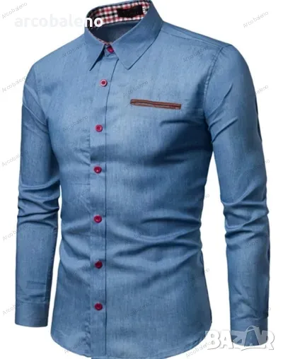 Ежедневна мъжка риза с джоб и дълъг ръкав, 3цвята
