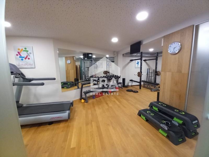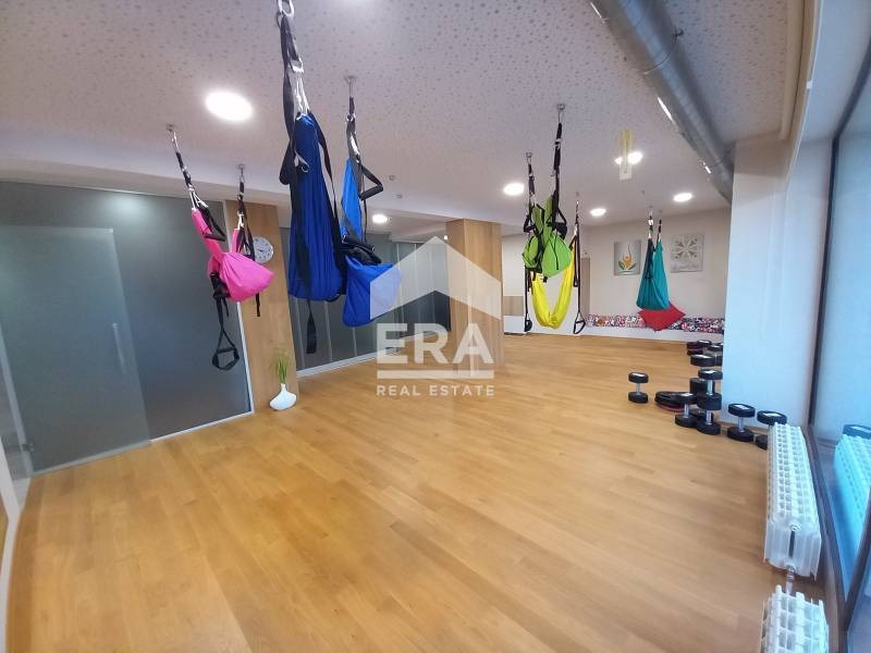 Вътрешното разпределение е съобразено с досегашното предназначение на помещението, а именно рецепция и спортна зала за йога с възможност за окачване на люлки за въздушна йога, фитнес зала оборудвана с фитнес уреди Life fitness, масажно студио, релакс зона с TV и озвучение, дамска и мъжка съблекалня с душ кабини, санитарен възел, будоар към дамската съблекалня, съблекалня с баня за персонала, сауна, парна баня и сервизно помещение .