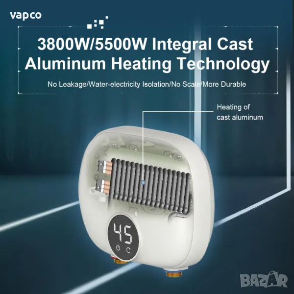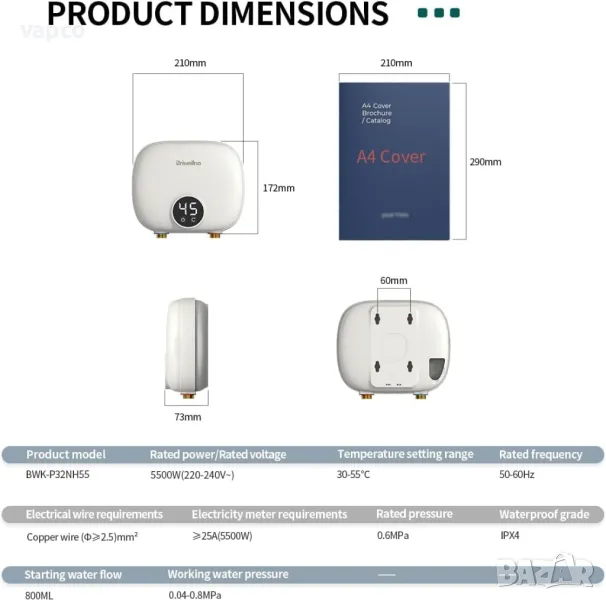 Електрическият бойлер без резервоар Briwellna P32 с мощност от 5500W осигурява безкрайна топла вода.