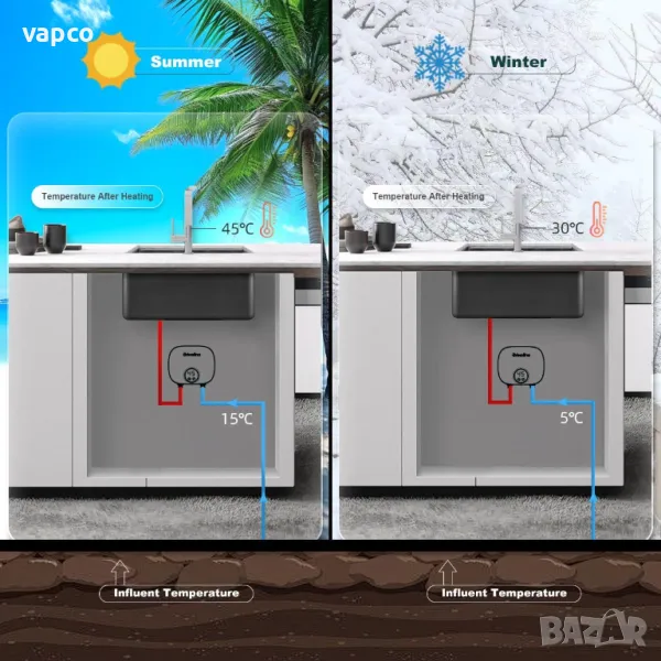 Идеален за кухни и бани. Той доставя минимум 800мл гореща вода на минута, като изходната температура се влияе от скоростта на потока и температурата на студената вода. Компактният модул (210 мм × 172 мм × 73 мм) се монтира във всяка ориентация, като лесно заменя по-малко ефективните нагреватели. Отличава се с нисък активиращ поток (0,04-0,8 MPa) и спестява вода и енергия, като се активира само когато е необходимо, елиминирайки загубата на топлина.