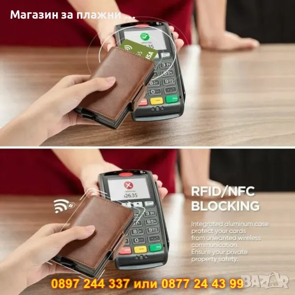 Кожен портфейл с rfid защита - светло кафяв - КОД 4417 → Обява 49438683