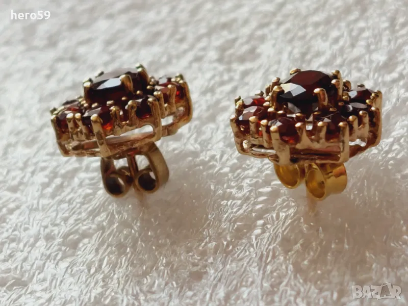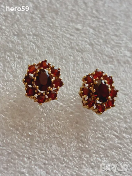 Златни дамски обеци с инкрустирани гранати. Злато 333 → Обява 49438690