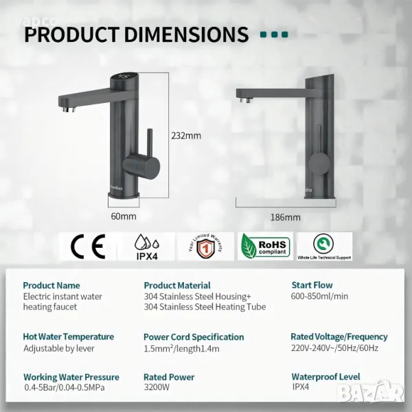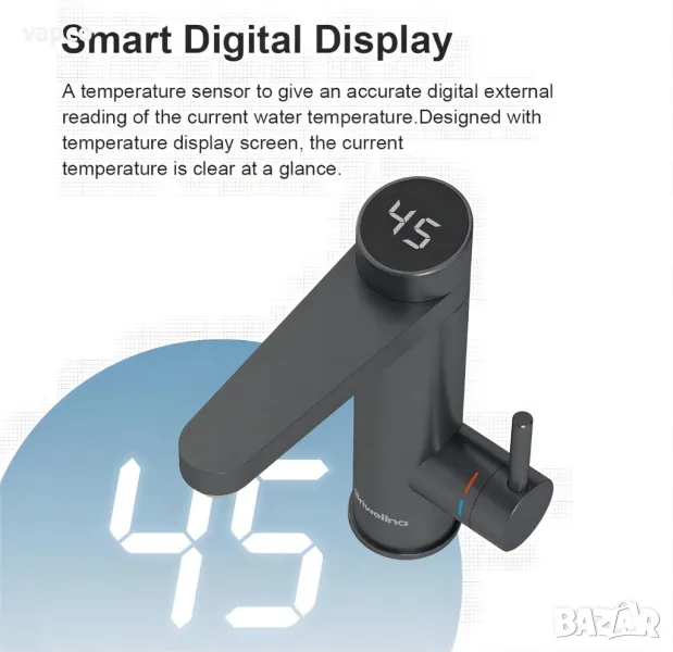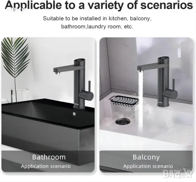 Проточен смесител с нагревател за кухня и баня BM71-Gray