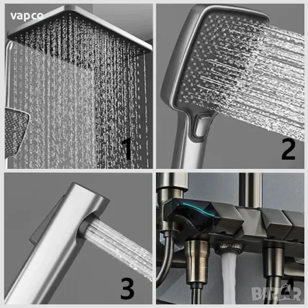 Чисто нов модерен интелигентен термостатен 4в1 душ за баня с дисплей и LED подстветка