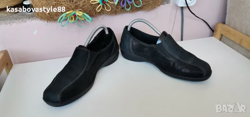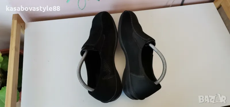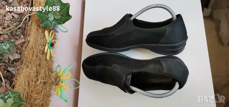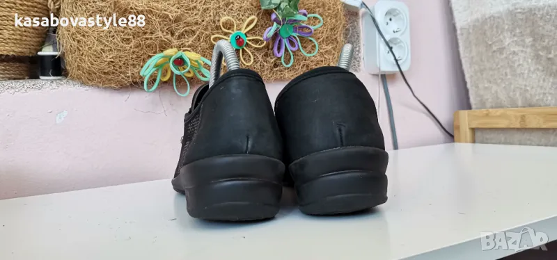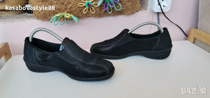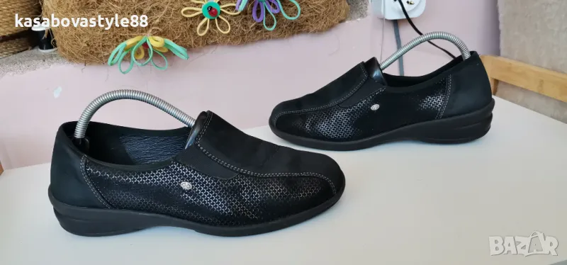 Изключително комфортни дамски ортопедични обувки за ежедневието в перфектно състояние. Вътрешната част включително и външната са изработени изцяло от естествена кожа с ефектна открояваща се шарка. Те се обуват лесно благодарение на страничните ластици. Леки, гъвкави и много надеждни. Стелката е 25 9см.Ходило отзад 3.5см.Цялостна височина отзад 9.5см.