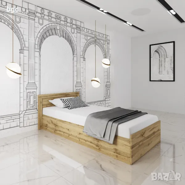 Легло Irim Kristofer, 90x200 см, Подматрачна рамка, Цвят Дъб Дакота - 24 МЕСЕЦА ГАРАНЦИЯ