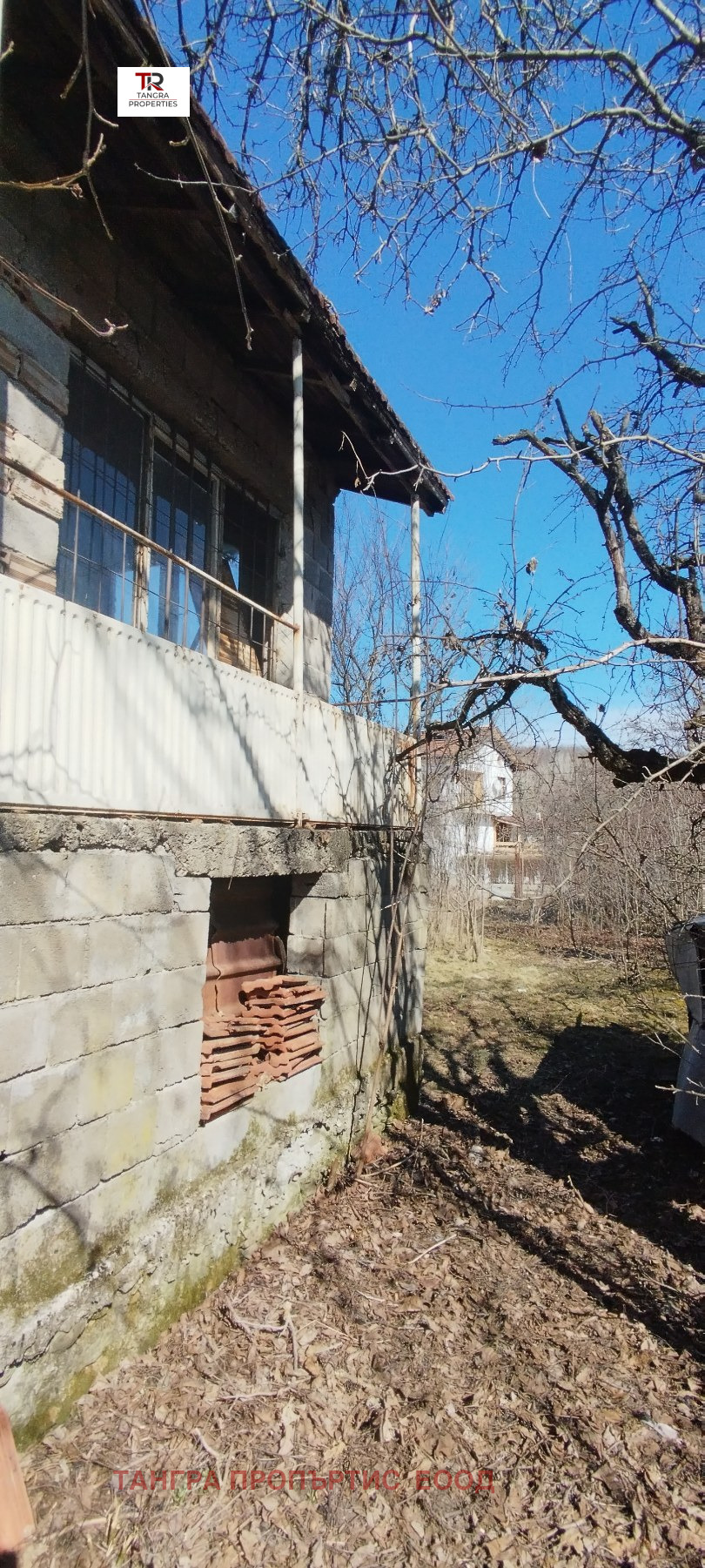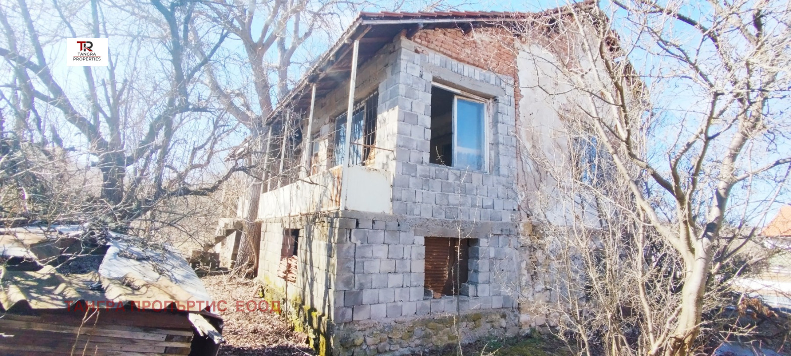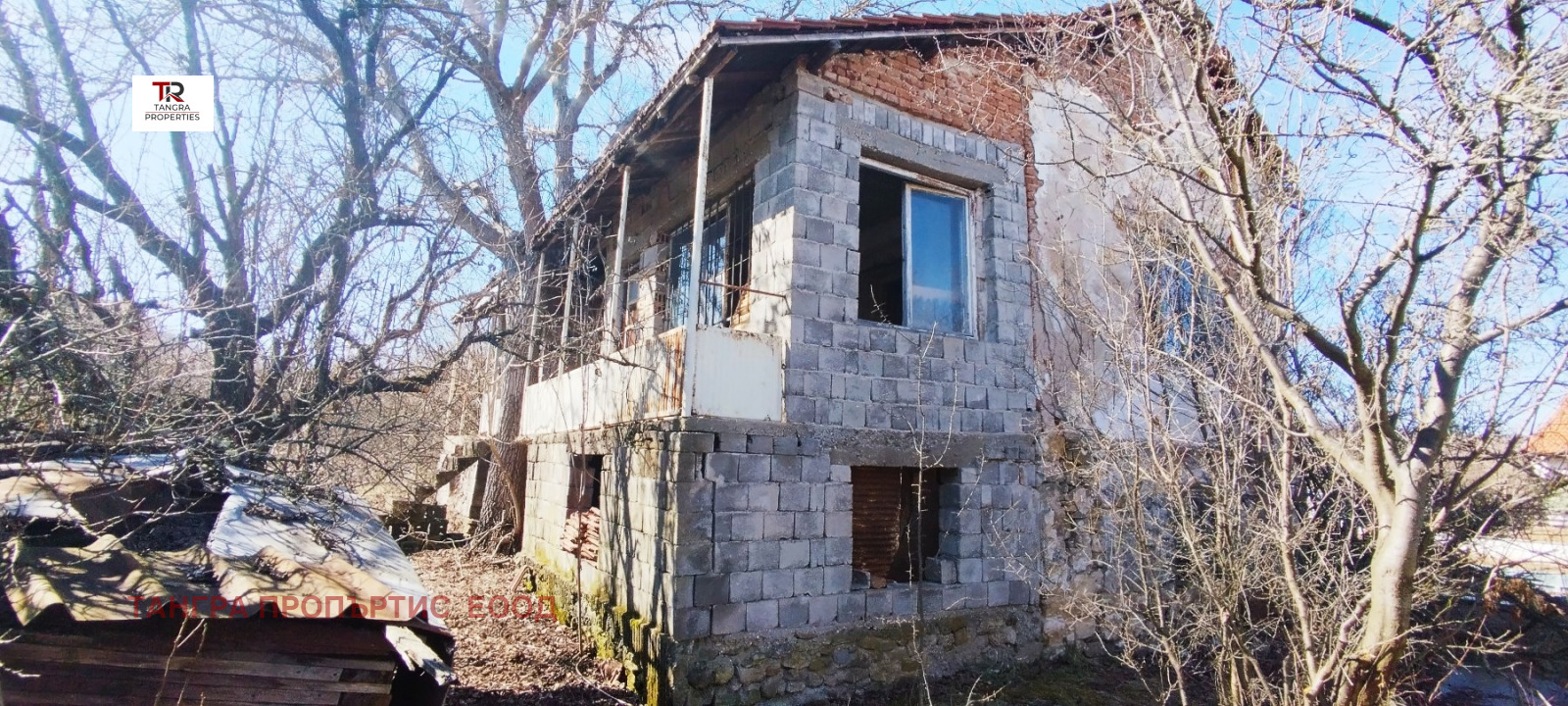 Къщата се намира в близост до центъра на селото, сред новопостроени къщи с постоянно живущи съседи, с големина от 120кв.м. е и като цяло е за основен ремонт и укрепване.
