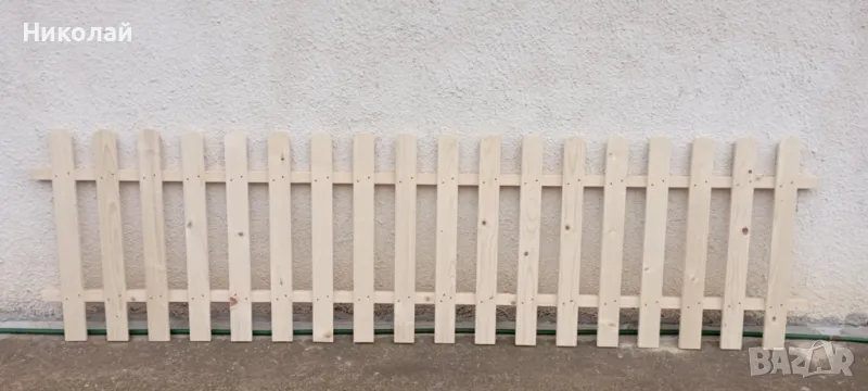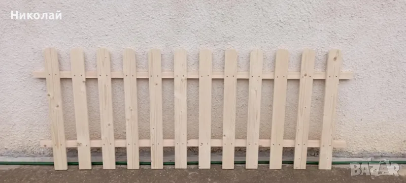Декоративна дървена ограда изработена изцяло от иглолистна дървесина, захваната с винтове за дърво. Идеална е за ограждене на детски площадки, двор, градина или заведение.