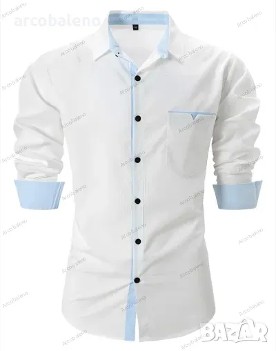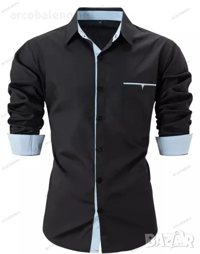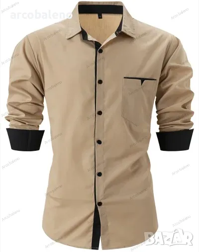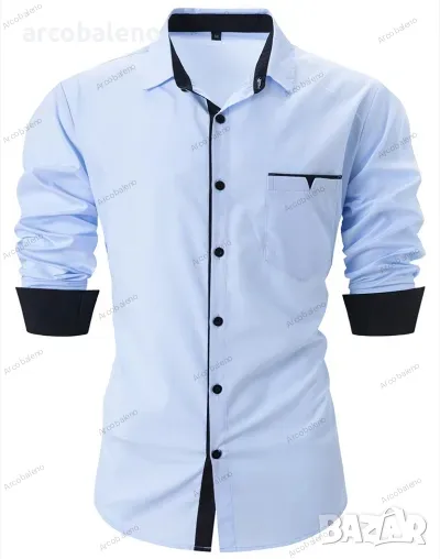 Ежедневна мъжка риза с дълъг ръкав в контрастен цвят на ревера
