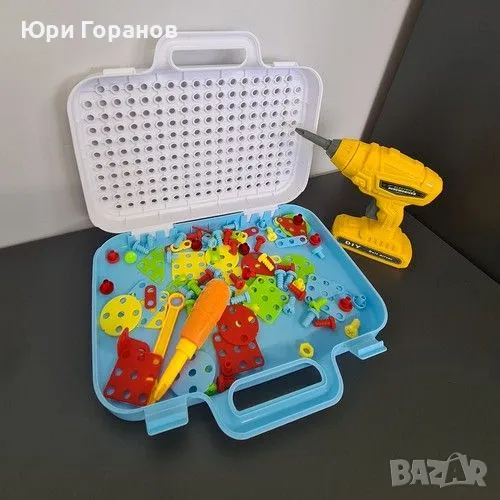 РАЗВИВА И ЗАБАВЛЯВА – играта с мозайки е чудесен начин за развиване на ръчни умения и сръчност, упражняване на координацията око-ръка и упражняване на логическо мислене. Децата също упражняват търпение и концентрация с играчката . Творчески начин да се забавлявате страхотно с родителите си. Играта включва подреждане на картини/модели с помощта на много различни форми (правоъгълник, квадрат, кръг, триъгълник) . Избраните елементи се завинтват с помощта на отвертка към основата на куфара, върху която има специални отвори.