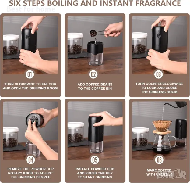 【ЛЕСНА РАБОТА】Старт с един бутон, ефективно смилане на кафе на зърна и автоматично изключване след смилане. А пълното зареждане на батерията отнема около 2,5 часа.