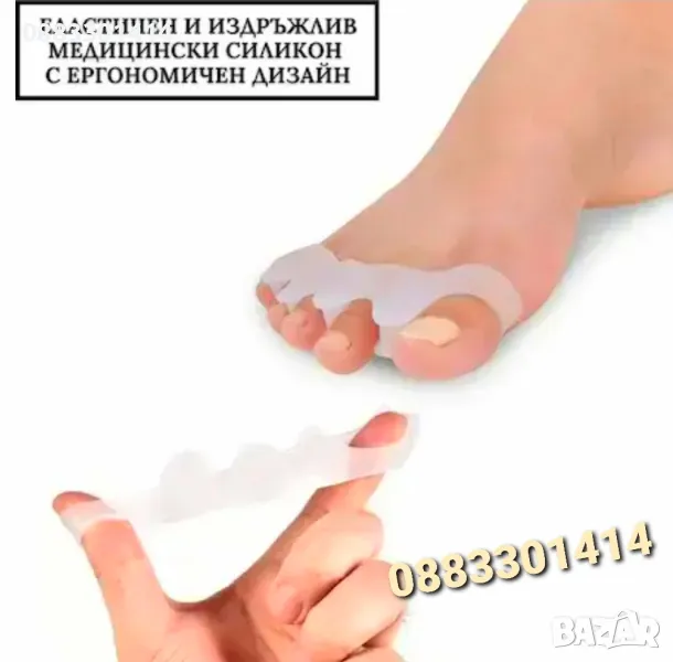Фиксатори за пръсти на краката за изправяне на изкривени пръсти и разделяне при застъпване на пръстите на краката. Силиконов сепаратор за разделяне на пръстите на краката и поддържането им изправени.