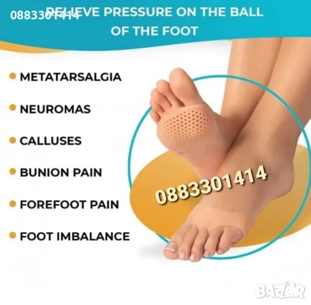 Това е продукт за отпускане и лична грижа в областта на стъпалото. Силиконовите подложки обхващат метатарзалната част на ходилото и неминуемо допринасят за по–голям комфорт и отпускане, като последващото им действие е за облекчение на болката и предотвратяване на хода на възпалението (ако има такова) в областта.