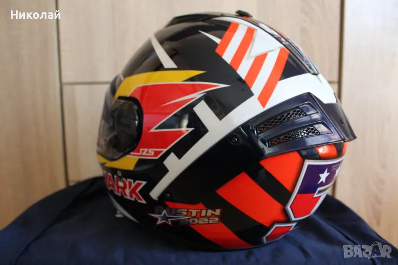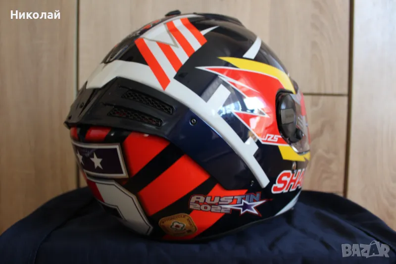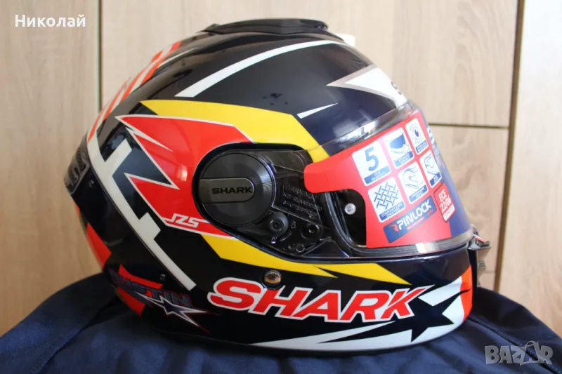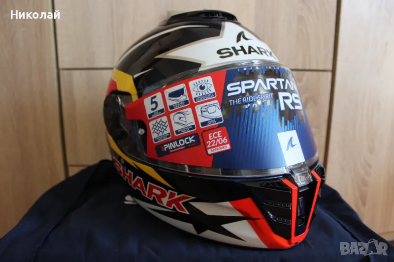 Shark Spartan RS - първата каска от гамата на Shark, която успява да покрие новият стандарт за безопасност ECE R22.06. Каската е с много готина разцветка реплика на Зарко от състезанието в Остин 2022. Размер "S". В комплекта има и Pinlock(плака против изпотяване на визьора).